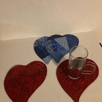 Nye Små dækkeservietter, til kop eller krus, søde krus brikker eller hvad man kalder dem. Kraftige og i flere lag så de Isolerer og skåner bordet. Kan vaskes.