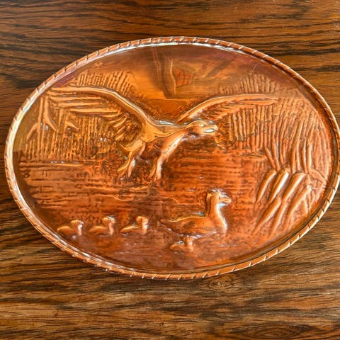 Kobberplatter, Fuglepar, Måler 14 X 19 cm.