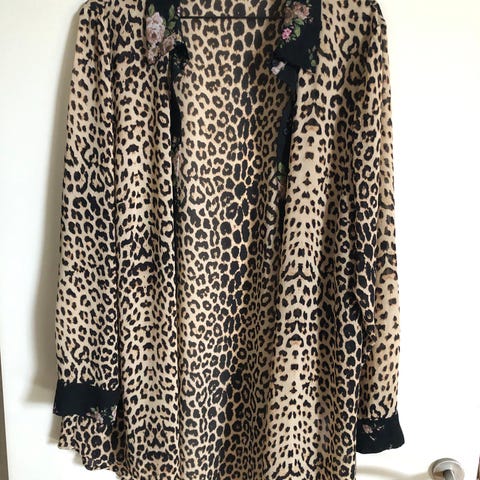 Der er skjorten er transparent er mærket i nakken klippet af brugt få gange så den er næsten ny
