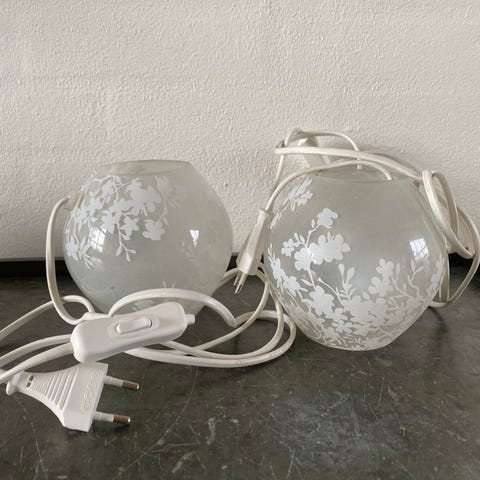 Råhvide i romantisk stil. Med skærm måler lamperne 32 cm