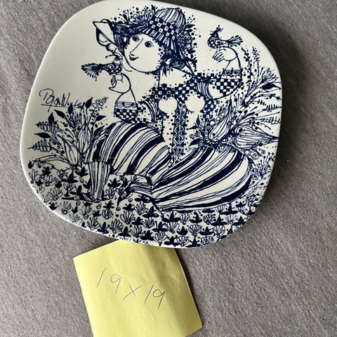 Urtepotteskjuler i porcelæn med motiv i sort streg af kvinde med titlen Sommer. Nr. 3024-699