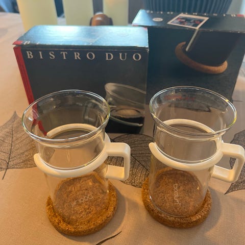 Bodum Kaffeglas, 2 stk med kork-skåner og lang ske, Bistro-Duo