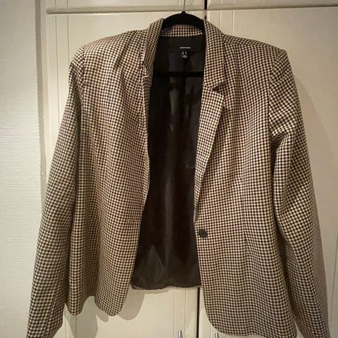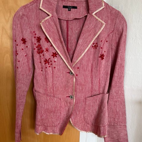 Vero Moda blazer i brun farve, dame størrelse 38. Jakken har en klassisk pasform med to knapper foran og lommer på hver side. Materialet og designet gør den egnet til formelle og afslappede lejligheder.