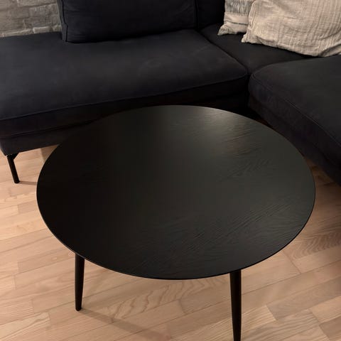 (OBS: Bordpladen er lavet af MDF, som ikke tåler direkte kontakt med vand. For at bevare bordets flotte overflade anbefaler vi at bruge skånere under glas, vaser og andre genstande med væske.)