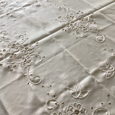 Spisebordsdug, Spisebordsdug lyserød – grå, rigtig flot, måler 260 x 122. Pris 100,-