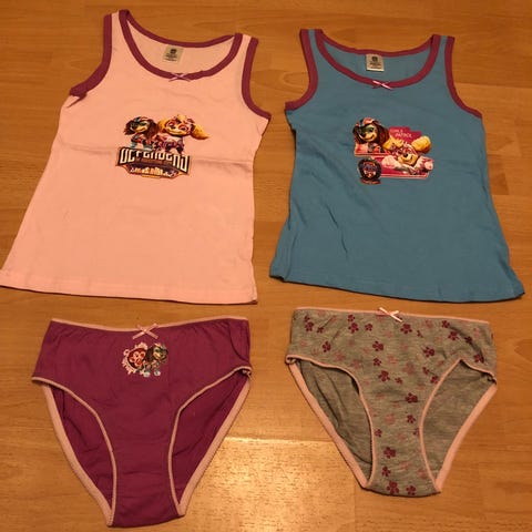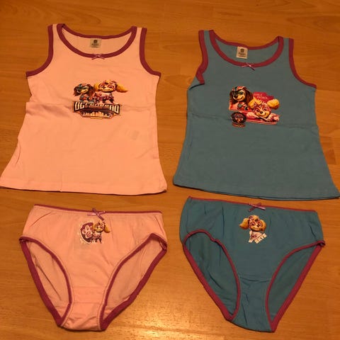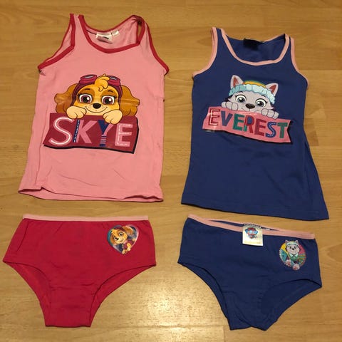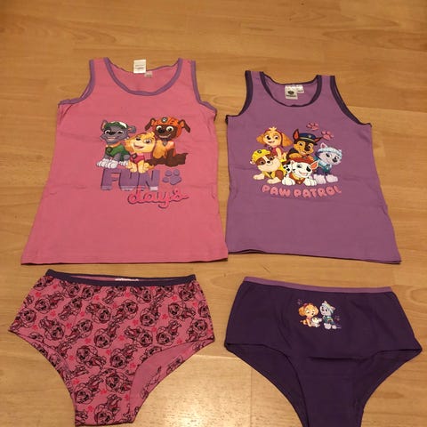 Helt nyt tøjsæt med Paw patrol sælges . Det er aldrig brugt - aldrig vasket . Det er i str 110-116 . Min datter er vokset fra det . Det sælges for 110kr