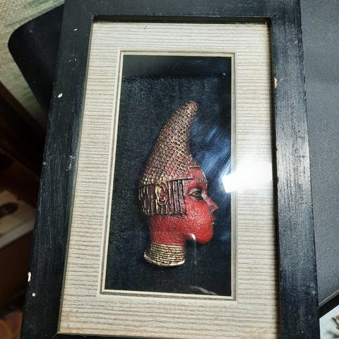 Mertens Kunst - tyske relieffer lavet i hhv. 1950 (pigen der står på et blåt hjerte, højde 17,5 cm) og Rødhætte der er fra 1940'erne. Rødhætte måler 22 cm i højden.