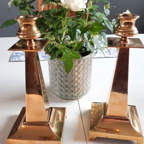 LYSESTAGER I MESSING, motiv: LYSESTAGER, ÆLDRE LYSESTAGER/ANTIK: (PAR) I MESSING: