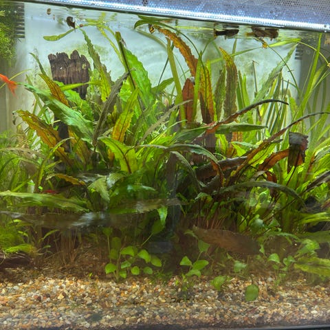 Hammerslået cryptocoryne. Stor flotte planter. Meget hårdfør plante, der elsker postevand og kan holdes sammen med cichlider, slørhaler og andre voldsomme fisk. 5-7 blade mellem 40-70 cm. høje.