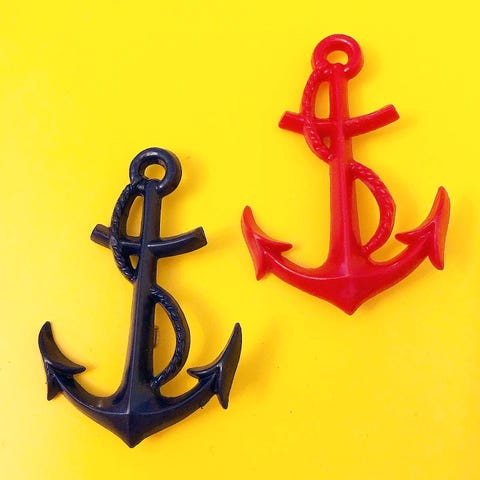Er du til det mere maritime look er her nogle skønne ankre i rød, hvid og mørkeblå. Det er vintage brocher fra slut 70’erne, vil jeg tro. Kan I huske stilen med stribede trøjer og et kækt lille tørklæde 😉