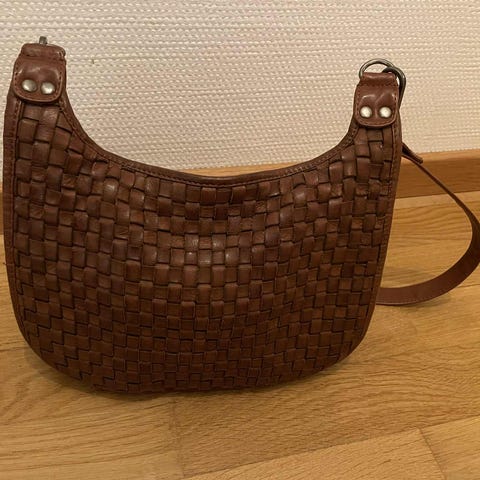 Tasken måler: B - 43 cm., H - 36 cm. og bunden er 11 cm. bred.