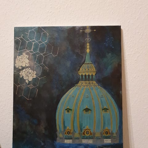 Dette abstrakte maleri viser en blanding af mørke og varme farver som sort, orange, rød og brun. Maleriet har et flydende og bølgende mønster, der skaber en dynamisk visuel effekt. Det er egnet til dekorative formål i forskellige rum. 30x30cm