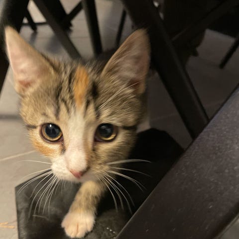 Hun er en meget kærlig og forsigtig lille pige. Hun er 3,5 måneder gammel, går selv i kattebakke og trives også sammen med hunde. Jeg foretrækker et hjem, hvor der allerede er andre dyr.
