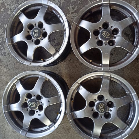 Original Kia alufælge 15 tommer. Dæk er gamle, så de er ikke til så meget.