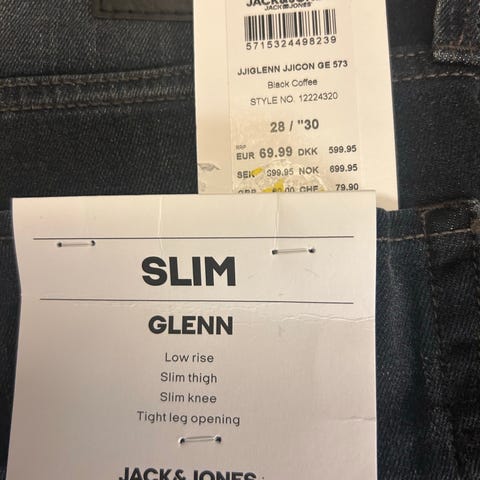 Disse tapered fit jeans er kun blevet prøvet én enkelt gang, hvor jeg derefter fandt ud af at de var for små. Derfor ryger denne buks nu til salg, hvor den forhåbentlig får en ny ejermand.