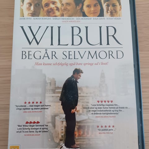 Wilbur begår selvmord, instruktør Ny i folie, DVD, drama, Brødrene Wilbur (Jamie Sives) og Harbour (Adrian Rawlins) er i 30'erne, da deres far dør og efterlader dem et nedslidt antikvariat. Wilbur overlever endnu et selvmordsforsøg og den kyniske psykolog, Horst (Mads Mikkelsen) og oversygeplejersken Moira (Julia Davis) mener, ligesom Harbour, at Wilbur har brug for en kæreste. Selvom kvinderne falder på stribe for Wilbur, er han ikke til at komme tæt på. Det er Harbour, der forelsker sig, da Alice (Shirley Henderson), der lever isoleret med datteren Mary (Lisa McKinley) kommer ind i brødrenes liv. Alice supplerer sit dødssyge rengøringsjob på hospitalet med at sælge patienternes efterladte bøger. Wilbur genvinder langsomt livslysten, generte Alice folder sig ud og Mary begynder at læse antikvariatets mange bøger. Harbour er lykkeligere end nogensinde, men han bærer på en hemmelighed, som trænger sig på... Ultrapopulære Mads Mikkelsen (Blinkende Lygter, Elsker dig for evigt) leverer endnu en fremragende præstation i instruktøren Lone Scherfigs Robertnominerede "Wilbur Begår Selvmord". Derudover er efterfølgeren til Scherfigs anmelderroste og prisvindende "Italiensk for Begyndere", spækket med udeblandske talenter. Skotske Jamie Sives (Edward II) viser sit store potentiale i rollen som Wilbur og Shirley Henderson (Harry Potter II) er forrygende som Alice, mens Adrian Rawlins (Breaking the Waves, Harry Potter) leverer en ligeså forrygende præstation i rollen som Harbour. Lone Scherfig har skrevet originalmanuskriptet til denne livsbekræftende film sammen med Oscarvinderen Anders Thomas Jensen (Blinkende Lygter, Mifunes Sidste Sang).