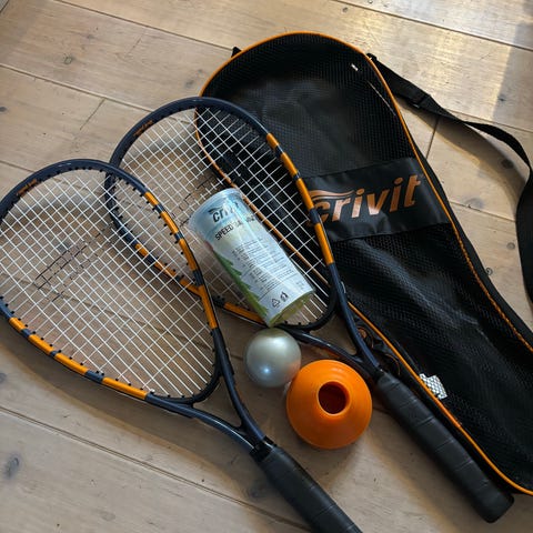 Ukendt Træ Tennisracket Sæt Blå og Naturfarvet