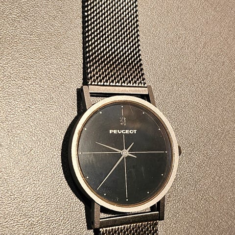 Peugeot “Diamond” women’s quartz dress watch from the 1980s or 1990s, featuring a gold-plated (likely 14K over stainless steel)