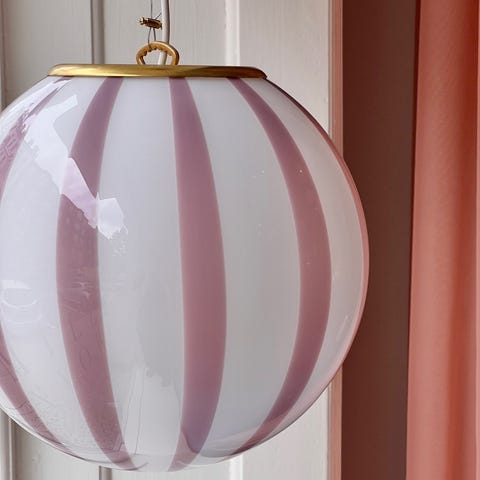 Candy ceiling lamp Pink/clear dotted mouth-blown glass, D 30 cmBrass canopy, Comes with adjustable mounting/wireNew condition, Made in ItalyThe ceiling lamp is new, made in Italy by a Murano master in original forms and in mouth-blown glass.*Please be aware that all lamps are handmade and unique and can therefore differ slightly in colours, patterns etc. from the one in the photo. The mouth-blown glass can have small imperfections and unique characteristics, e.g. air bubbles or variations in patterns and shapes