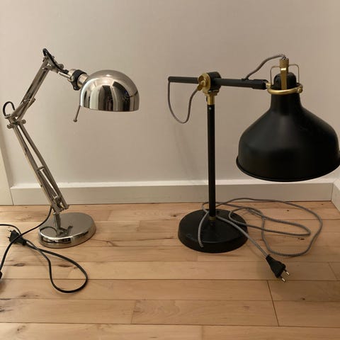 Lampen kommer uden bordfod eller bordklemme, dette købes særskilt.
