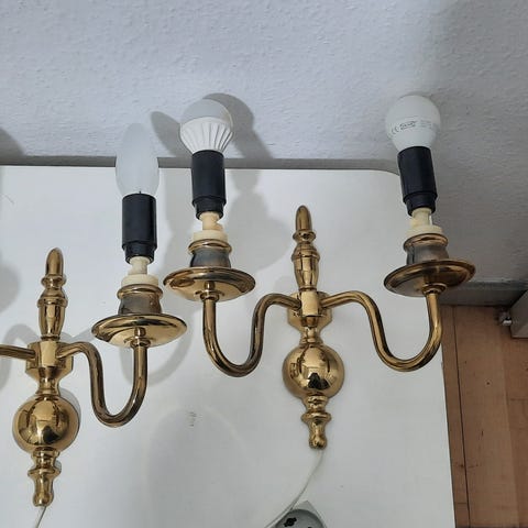 Væglampe, BELID Gratis levering Amager+ind.kbh., ca mål: 25x26cm Giver et meget smukt lys. Let at montere! tænd og sluk på begge lamper. Samlet pris for 2stk. Leveres med spare pære. Sender gerne +porto.