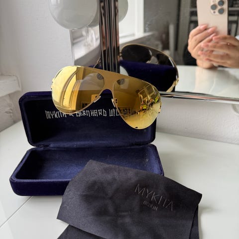Solbriller dame, Mykita franz, Super flotte guld mykita Franz solbriller 64/10. Samme model som Sarah Jessica Parker har på i filmen som Carrey i Sex and The City. Helt som nye. Haft på 1 gang.