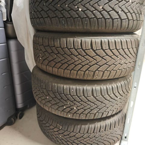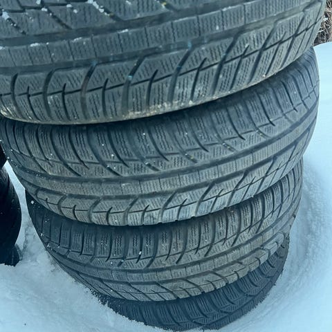 Brugte vinterdæk på fælge sælges til højstbydende.