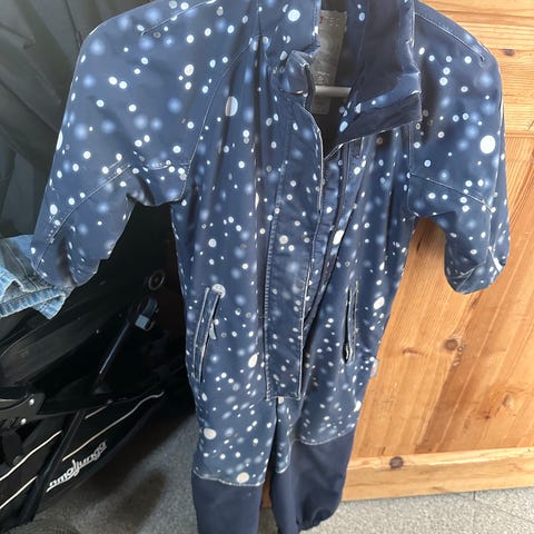 Flyverdragt fra Reima i pæn stand. Aftagelig hætte med trykknapper. Reflekser foran og bagpå. Skrålommer med lynlås. Afhentes i Lyngby. Tager MobilePay.