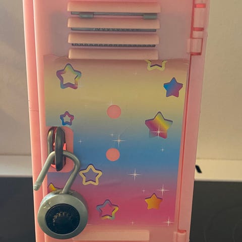 Fint skoleskab som er brugt til leg med our generation