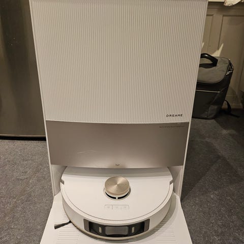 Den kommer med Cleaning Station, så man kan tømme beholderen, samtidig med opladning.