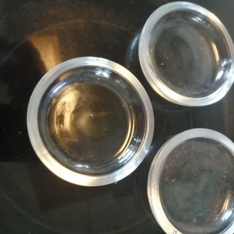 Andet, Glasaskebæger, Holmegård, 2 Holmegård glasaskebægre. Stor L: 15 cm, B: 13 cm.
