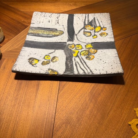 Keramikfad med klare farver - 20 kr. Hentes i Karise.