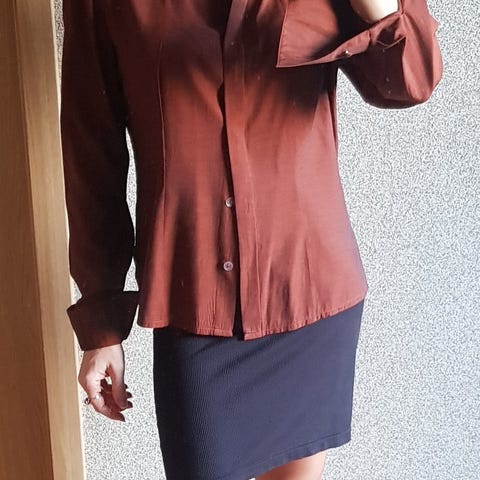Skjorte, Znk, str. 42, Fin tynd skjorte i råhvid mde sorte kontraster i halsen, ned foran og ved håndled.Kun lidt brugt.Se billederne.Nu nedsat til 70 kr