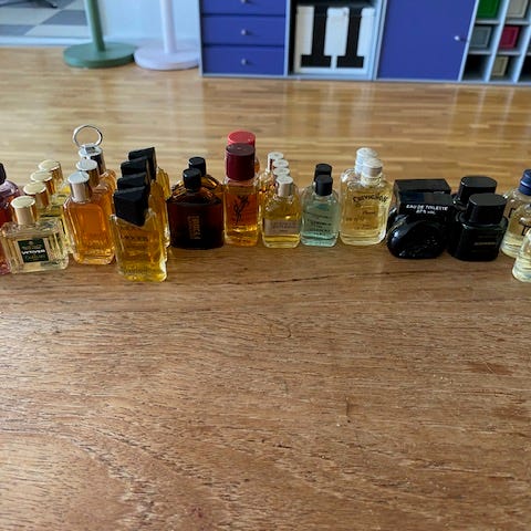 Herredufte miniature samling på 20 sælges