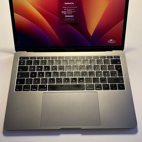 Apple MacBook Pro 13,3" bærbar computer med Retina-skærm (2560 x 1600). Udstyret med en 2,0 GHz Quad-Core Intel Core i5 processor, Intel Iris Plus Graphics 1536 MB, 16 GB LPDDR4X RAM og 512,16 GB SSD lagerplads. Farve: Space Gray. Drevet af macOS Ventura operativsystem.