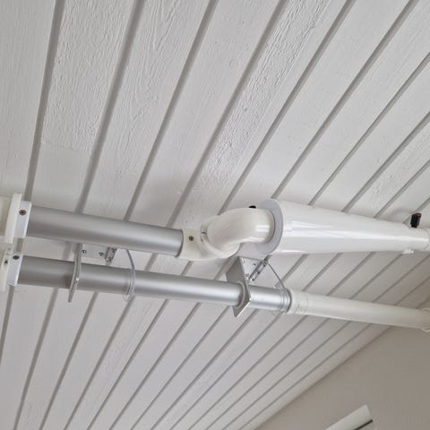 Stærk og lydsvag udsugning m. Motor og indvendig kontakt fra Lindab til at tænde og slukke. Sugestyrken kan indstilles fra kontakten. Til udvendig vægmontering. Rør og samlinger medfølger (se billeder)