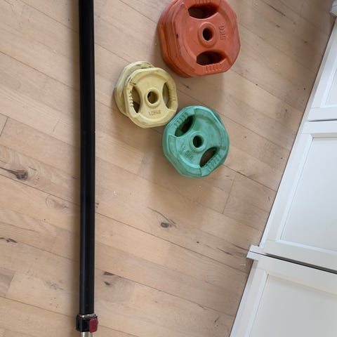 Fint vægtstangssæt. Fejler intet. Der medfølger følgende skiver: