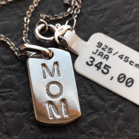 Smuk halskæde udført i Sterlingsølv med vedhæng med teksten "DAD".