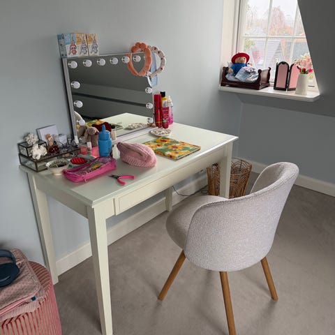Wood skrivebord er med sine delikate mål og talrige funktioner oplagt til børne- og teenageværelset, men fungerer også smukt i et hjørne af stuen eller i køkkenets krog. Bordet har mulighed for to højder, idet man kan udskifte benene, og er desuden udstyret med to skuffer, der i mål er som skabt til A4-blokke og andre skole- og tegneartikler, og en skjult hylde med plads til ledning og oplader, hvor laptop og øvrig elektronik kan have fast plads. Bordets indbyggede tegneplade, der kan vippes op fra bordet og i øvrigt trinjusteres som et slags mini-staffeli, gør bordet oplagt som station for både tegning og læsning, mens den vendbare brevordner med tre rum og en hylde, sørger for orden og overblik. Bordet appellerer i sit gennemtænkte design til små, kreative hoveder, der her kan både udtænke og nedfælde store arkitektoniske ideer på såvel skærm som papir. Wood armstol passer til Wood skrivebord i begge højder.