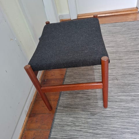 teakskammel eller taburet, jern og teak, 50 år gl.