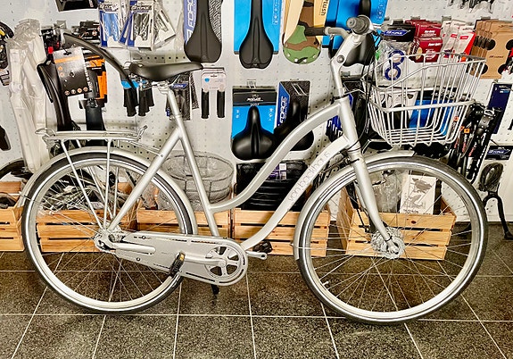 Damecykel til salg, Scott Metrix, stelstørrelse “L” og 8 gear. Nyistandsat, ny krank, nyt kranksæt, ny kassette og kæde, nye dæk og slanger, ny sadel, nye pedaler, ny støttefod, ny bagagebærer, nye håndtag og ny ringeklokke.