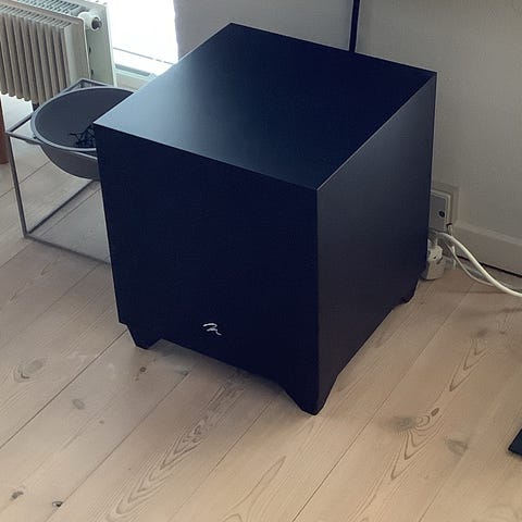 Subwoofer i sort sælges. Med indbygget forstærkere på 200 watt. Er super velegnet til elektrostatiske højttalere.