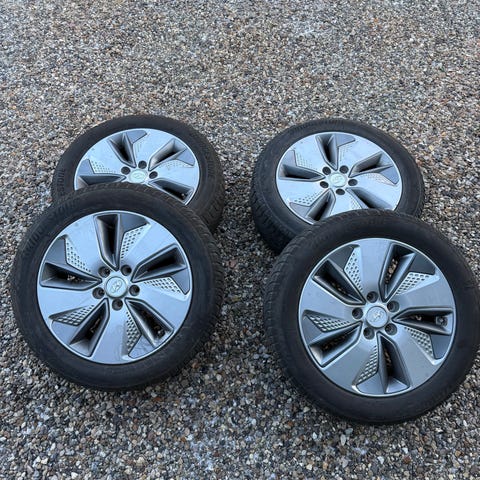 4 stk. vinterdæk på alufælge. Har været anvendt på Hyundai Kona EV. Ca. 22.000 km. Mindst 7mm mønster. Købt hos Hyundai 2023.