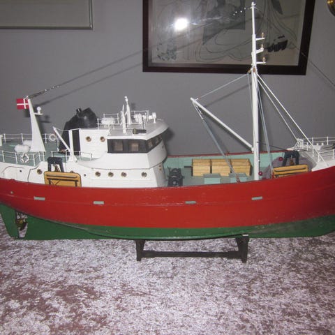 model af gl skotsk trawler, komplet sejlklar med ny digital 4 kanal rc styring. mål l 125 cm b 23 cm h 56 cm