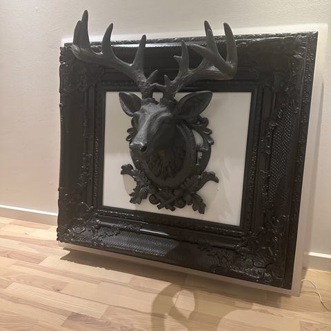 Og det kræver den helt store væg i privaten til sådan en udsmykning. Hver del måler 102cm i bredden og 202cm i højden, så det samlede kunstværk måler således 202cm i højden og lige godt 6 meter i bredden.