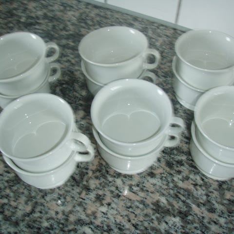 Arabia kaffekop med underkop i ternet mønster i farverne gul, blå og grøn. Koppen er hvid indvendig og har hank. Underkoppen har en ensfarvet grøn overflade. Sættet består af 9 kopper og underkopper i samme design, velegnet til servering af kaffe eller te.