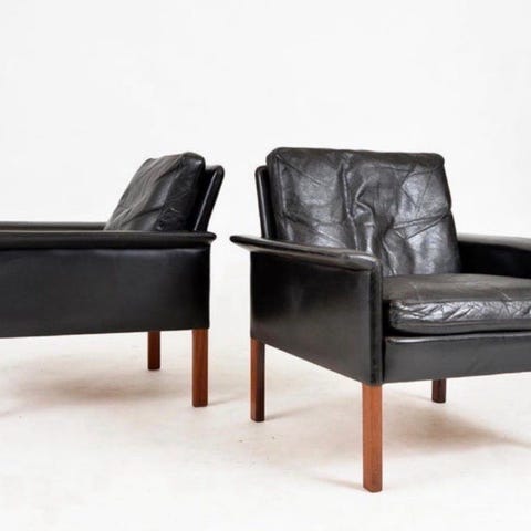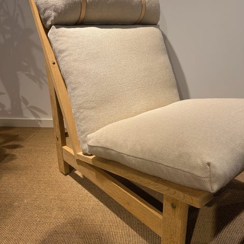 Claus Holm lavstol lænestole. Læder. Meget behagelige at sidde i. Mahogni ben lidt nussede ellers fine stole fra 2021, betrækket kan tages af.