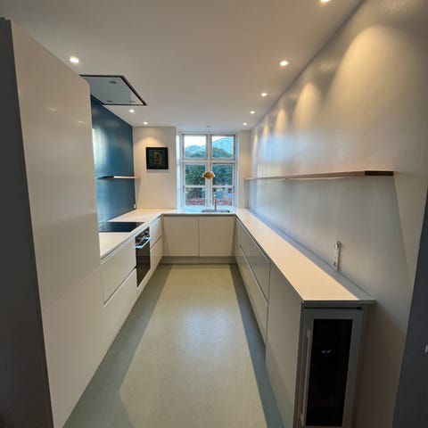 Der er lavet plads til opvaskemaskine inkl. front dertil.