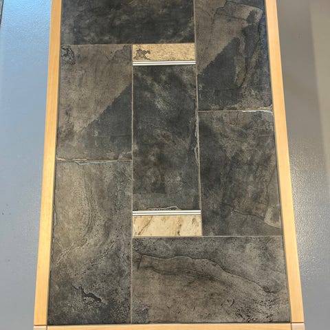 Flot og velholdt sofabord med kakler og skuffe der kan trækkes ud i den ene ende.