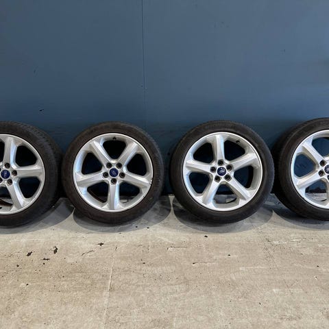 These rims with winter tires from 2021 are for sale. They were on a 2015 Ford Mondeo. The rim size is 18 inches with ET55 and 8jx18. The tires are 235/45r18.